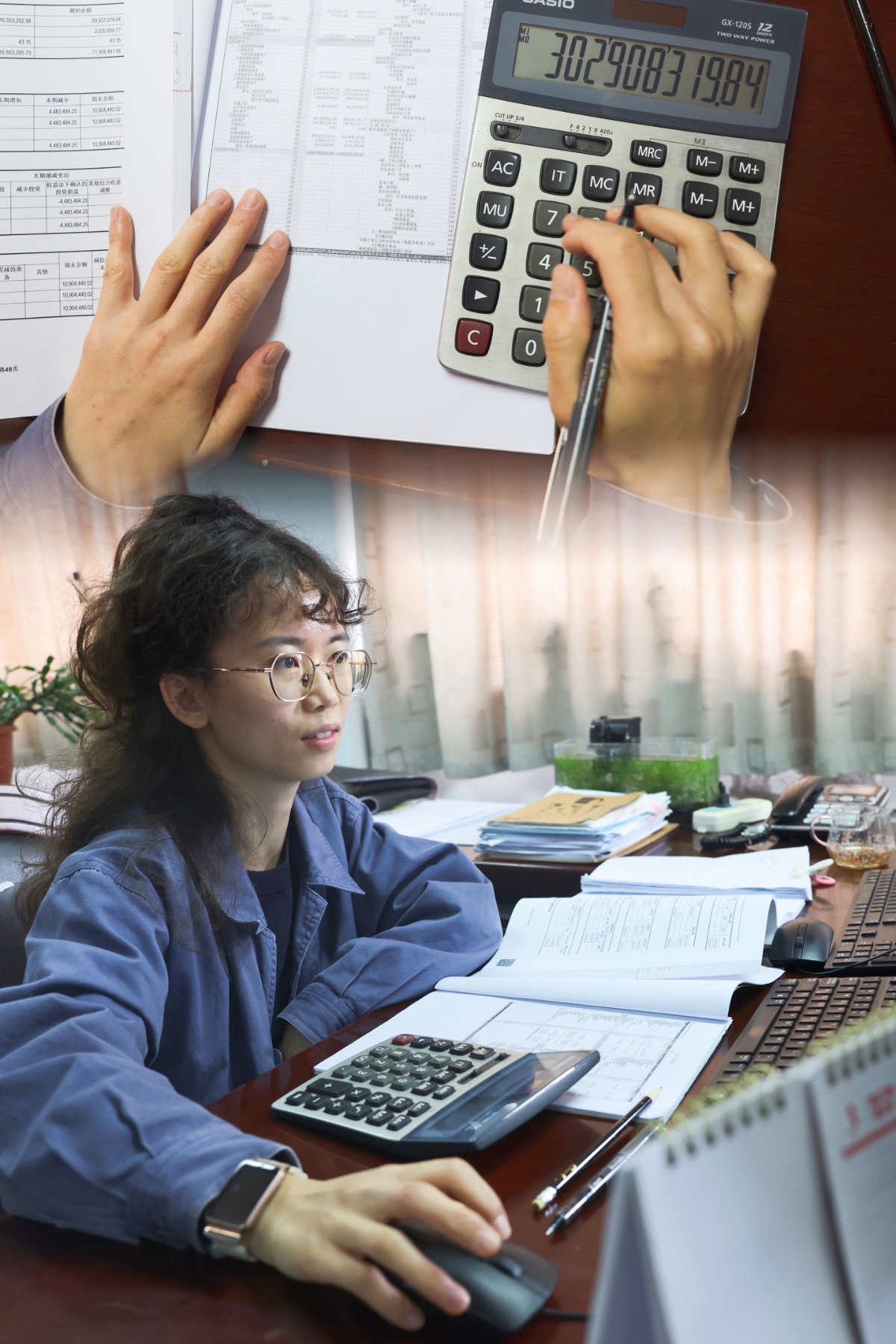 一手翻閱報表,一手按動計算器,這雙手嚴守著規矩的底線。