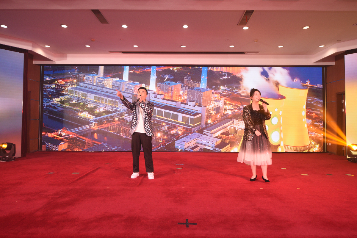 團拜會上,“向新而行 能創未來”主題文藝演出以“致敬2024祝福2025”開場,展示集團2024年度十大新聞,致敬在過去一年里奮力拼搏、擔當作為的浙能人。舞蹈《前程螣螣》,紅燈籠與演員們靈動的身姿相互輝映,營造出喜慶而又充滿希望的氛圍;朗誦《了不起的你》由浙江省勞動模范張曉煒和青年職工共同演繹,用真摯情感和鏗鏘語調贊美拼搏奮進的每一位浙能人;歌曲串燒《熠熠的光》 由五首歌曲相互串聯,充滿力量與希望,如熠熠的光,唱出了浙能人的奮斗與夢想;原創說唱《電廠英雄》以節奏強烈的旋律和充滿力量的詞句,闡述了電廠工作者在崗位上的堅守與付出,歌頌了所有為能源事業奉獻的英雄們,該作品入選2024年全國總工會網絡正能量歌曲征集活動百強名單,被評為聲暖人心歌曲;星火說《在世界屋脊追風逐光》通過情景再現的形式,講述了一批批浙能人奔赴大西北,克服重重困難的故事,傳遞出浙能人對能源事業的執著追求和奉獻精神,該節目曾在“中國夢·勞動美——凝心鑄魂跟黨走 團結奮斗新征程”全省職工演講比賽中斬獲金獎;歌曲《向未來》以激昂的旋律和奮進的歌詞鼓舞人心,唱響了浙能集團對未來的期待與憧憬,讓每一位浙能人心中都燃起了奮進的火焰;音樂劇《能創未來》圍繞白馬湖實驗室綠色甲醇創新項目的研發應用,講述了浙能人在能源創新道路上的堅持與拼搏;舞蹈串燒《上春山》結合不同風格的舞蹈,傳遞著浙能集團的春山可望、歲月可為;合唱《璀璨浙能人》用激昂的歌聲抒發著浙能人勇于探索、敢于創新的精神,展現了浙能集團在能源領域不斷創新、砥礪前行的決心,浙能集團全體職工攜手向著更加輝煌的2025年闊步前行!