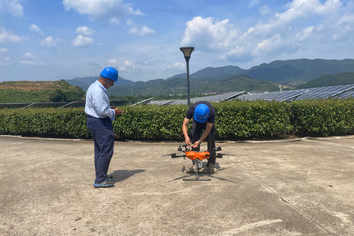 浙江新能旗下衢州力諾光伏電站開展無人機熱斑巡檢。 朱云宇 攝