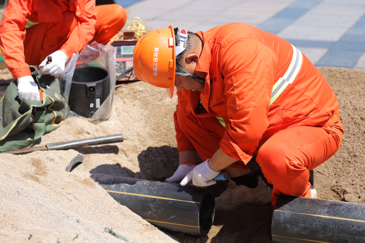 演練人員開展管網搶修。 朱巧奕 攝