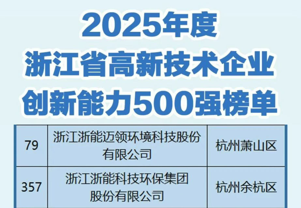 創新浙能|省高新技術企業創新能力500強榜單發布 集團這2家企業上榜